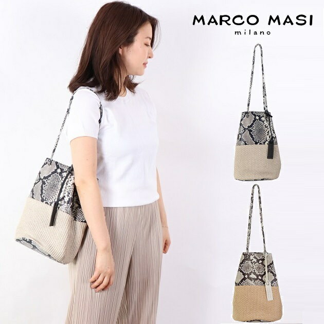 (SALE) Marco Masi マルコマージ パイソン ヘビ柄 かご 巾着バッグ ブラック ホワイト バッグ レディース イタリア製 牛革 本革 カゴバッグ トートバッグ 2836 春夏 2021