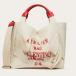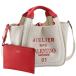 しっかりとした丈夫なキャンバスで仕上げられた本体は、持ち手や内側の所々に鮮やかなレッドカラーのレザーが施され、カジュアルながらも高級感を漂わせるデザインとなっています。