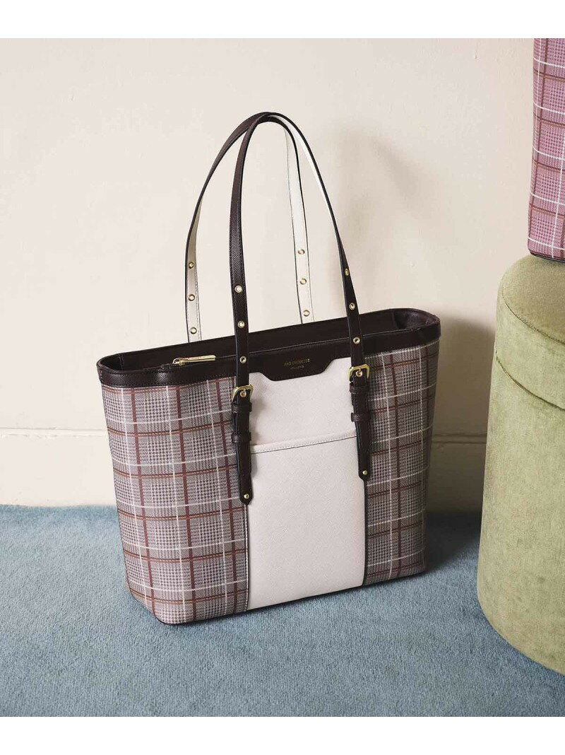 アンドシュエット chouette ベルトデザイン チェック ハンド トート A4対応 バッグ レディース お洒落 デイリー 使いやすい ギフト サマンサ アンドシュエット(グレー ファーチャーム)