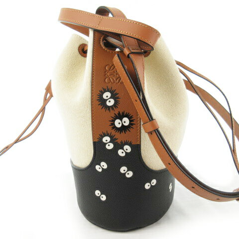 【中古】ロエベ LOEWE トトロ まっくろくろすけ ダストバニー バルーンバッグ Dust Bunnies Balloon bag ショルダー ハンド 巾着 2WAY ミディアム キャンバス レザー タン 鞄 21SS 新作 完売 希少 レディース 【ベクトル 古着】 210213 ベクトルプレミアム店