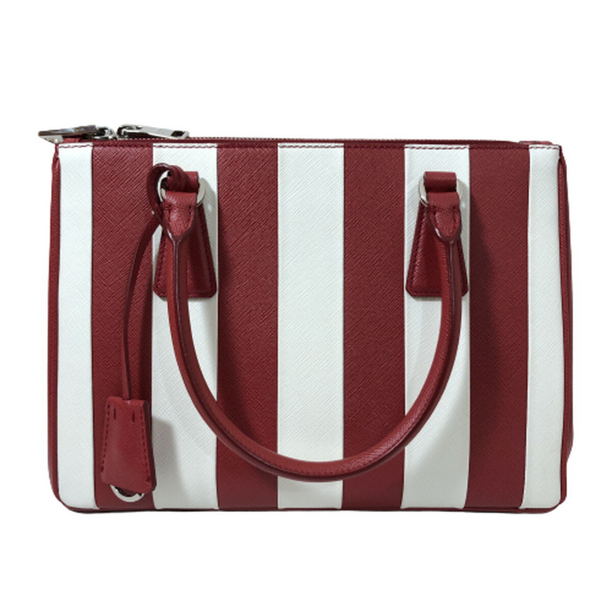 【中古】【美品】PRADA プラダ ガレリア サフィアーノ レザー SAFFIANO BAIADE ストライプ 2WAY バッグ カード付属 1BA863 赤 白 FUOCO BIANCO レディース