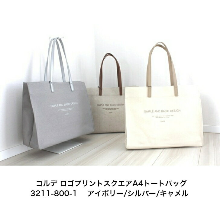 <COLDE>トライシル コルデ ロゴプリントスクエアトートバッグ A4対応 レディース 3211-800-1 アイボリー/シルバー/キャメル
