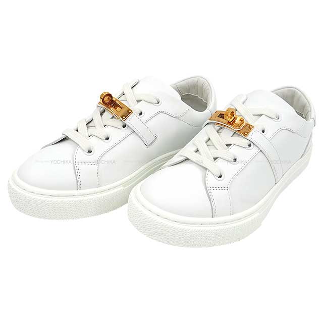 美品現行品エルメスデイレザースニーカーローカットシューズ靴ケリー金具ホワイト3724cmレディースMFT1016-E18