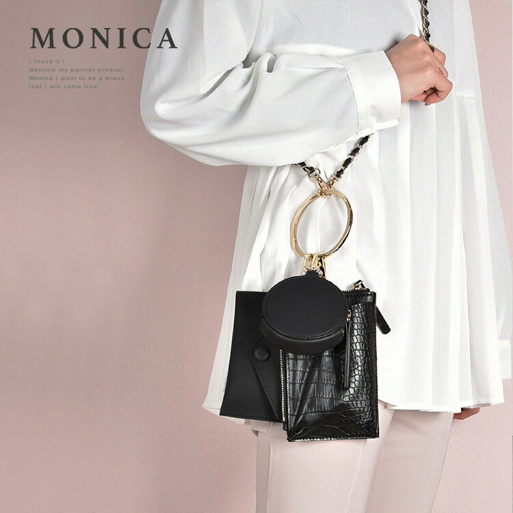 【トライアングルマルチショルダーバッグ】【MONI-1031】 レディース 3連ポーチ マルチケース キーケース パスケース ブランド バッグ リング ショルダーバッグ ミニ財布 ミニウォレット おしゃれ バッグ MONICA モニカ