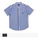 クワイエットライフTHEQUIETLIFEBARNUMSHORTSLEEVEBUTTONDOWNボタンダウンシャツ半袖ストライプロゴメンズネイビーホワイト