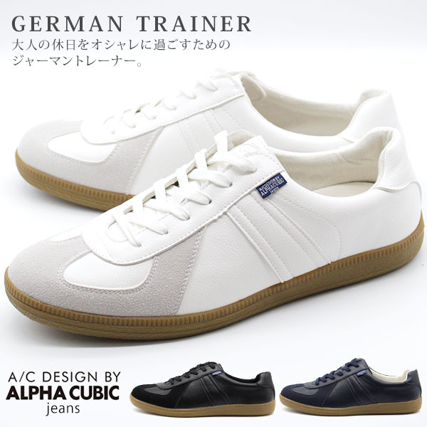 スニーカー メンズ 靴 黒 白 ブラック ホワイト ネイビー ジャーマントレーナー シンプル ALPHA CUBIC jeans ACJ-0100