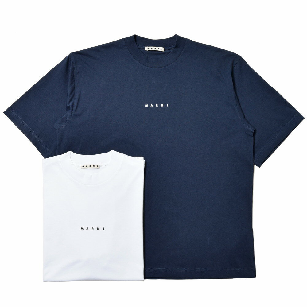 【P2倍★7/15 0:00〜9:59】 マルニ MARNI HUMU0223P1 USCS87 Tシャツ メンズ レディース トップス 半袖 ロゴ カットソー 白 クルーネック シンプル ロゴプリント 春夏 コットン 綿 LOW01 LOB99 44 46 48 50 52 ギフト プレゼント ネイビー ホワイト