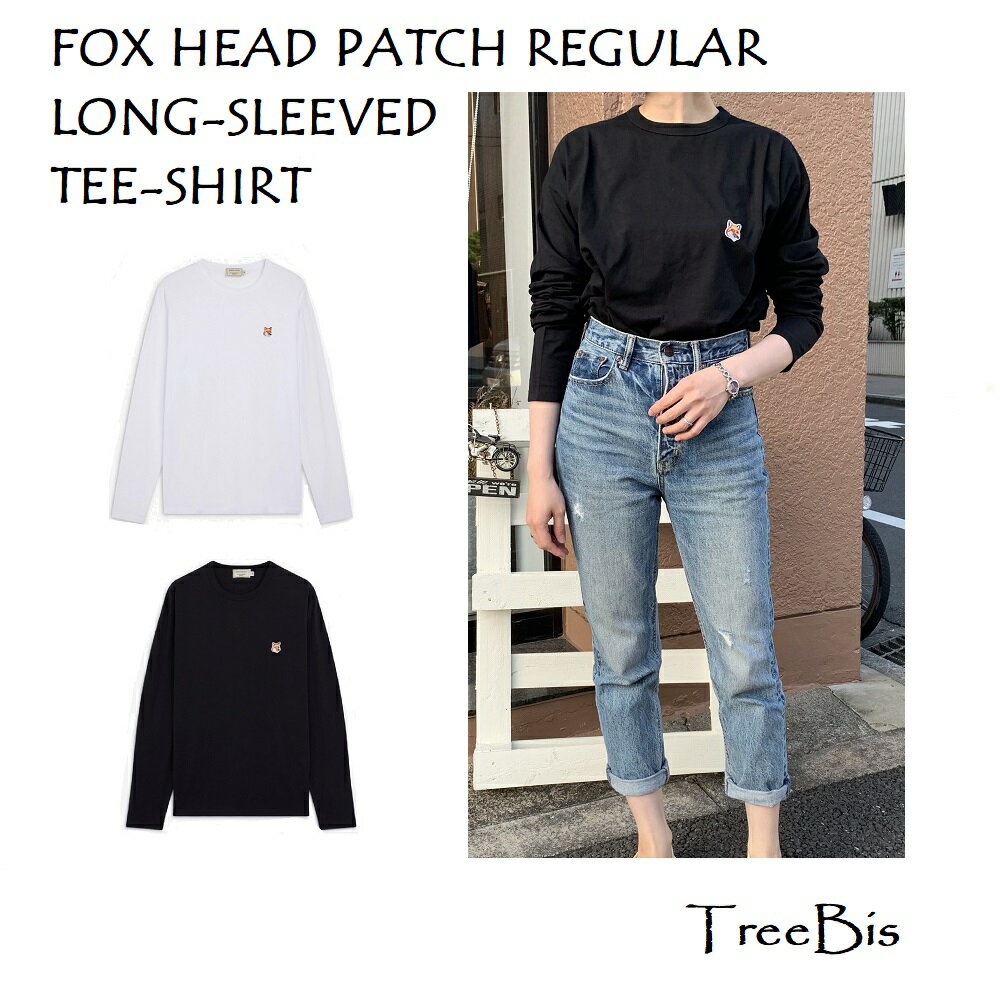 MAISON KITSUNE メゾンキツネ FU00163KJ0010 FOX HEAD PATCH REGULAR LONG-SLEEVED TEE-SHIRT ブランド ロンT ユニセックス メンズ レディース 長袖 黒 白 ワンポイント 人気