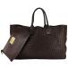 【ボッテガヴェネタ】BottegaVeneta イントレチャートカバMMレザーインポーチ付きトートバッグ115664ブラウン192696