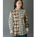 シャツブラウス2WAYショールカラーL/Sチェックネルシャツ