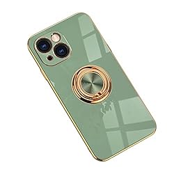 メッキケースiPhone 13 Pro MaxソリッドカラーソフトシリコンTPUケースリングホルダーキックスタンド保護カバー磁気カーマウントで動作,Light green,12 Pro |