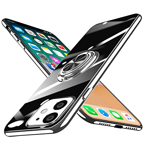 iPhone 11 ケース リング付き クリア tpu シリコン 軽量 薄型 メッキ加工 一体型 ソフト アイフォン 11 カバー 耐衝撃 透明 黄ばみなし 耐久 車載ホルダー対応 ストラップホール付き スタンド機能 全面保護 人気 スマホカバー 銀 送料無料