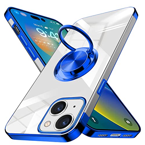iPhone 14 Plus ケース リング付き クリア tpu シリコン 軽量 薄型 メッキ加工 一体型 ソフト カバー 耐衝撃 透明 黄ばみなし 耐久 車載ホルダー対応 ストラップホール付き スタンド機能 全面保護 人気 スマホカバー 青 送料無料