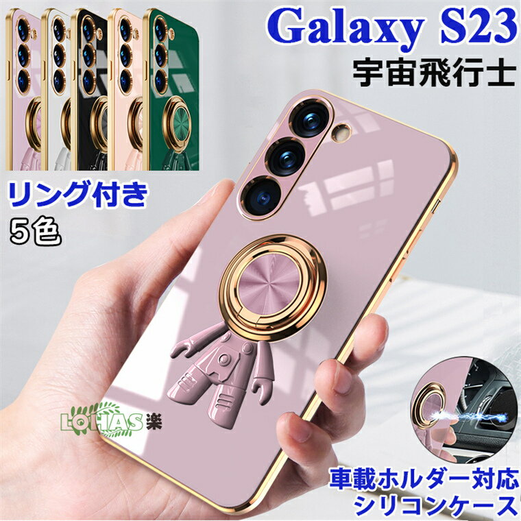 galaxy s23 ultra ケース Galaxy s23 ケース リング付き ギャラクシー S23ウルトラ S23ultra ケース カバー 背面型 宇宙飛行士柄 Galaxy S22 ultra ケース カバー 360°回転 スタンド 車載ホルダー対応 スマホケース メッキ加工 シリコン ソフト 保護カバー 背面ケース 韓国