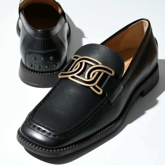 TOD’S トッズ ローファー 靴 シューズ ケイト レザー XXW44K0GR60MDL レディース BLACK ブラック 黒 メタル チェーン モチーフ シンプル スクエアトゥ ラバーペブ