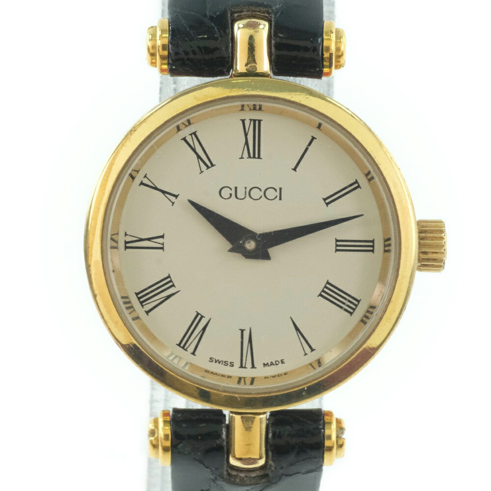 【GUCCI】グッチ シェリー ステンレススチール×レザー ゴールド クオーツ レディース アイボリー文字盤 腕時計【中古】