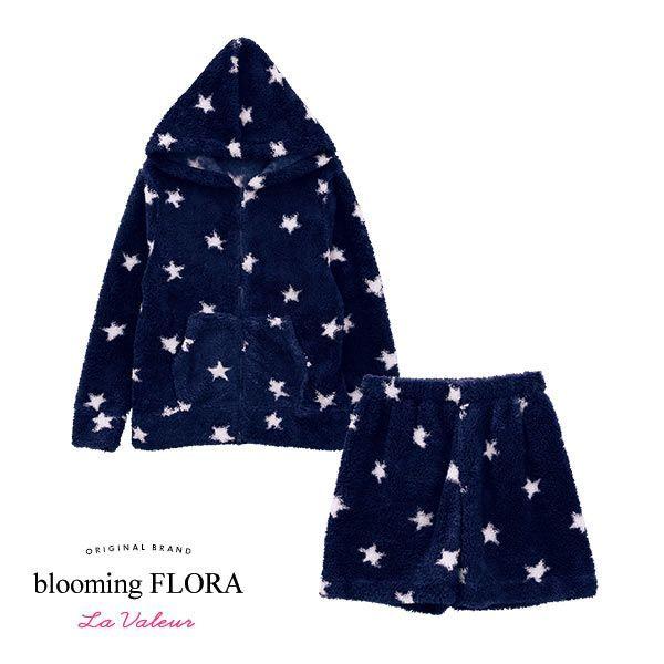 ルームウェアパジャマブルーミングフローラふわふわモコモコパーカー+ショートパンツ上下セットボーダー星柄優しい肌触りbloomingFLORA