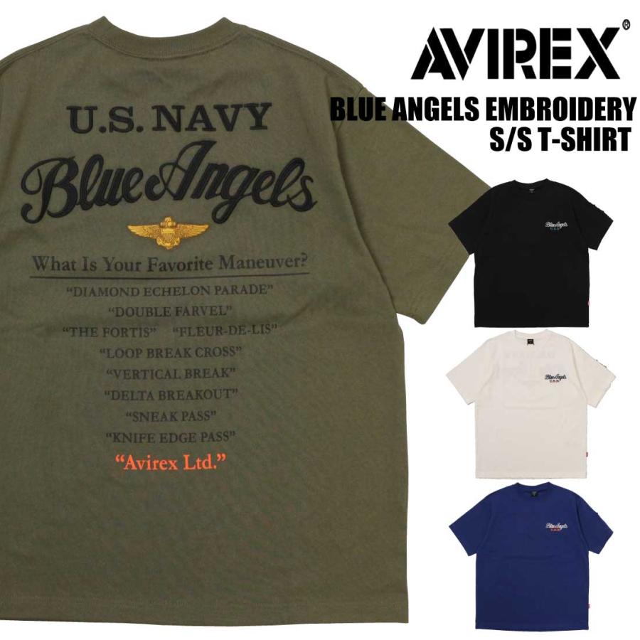 1点ならメール便可 AVIREX アビレックス #7834134020 半袖 エンブロイダリー Tシャツ『BLUE ANGELS』メンズ 男性 トップス ティーシャツ ミリタリー アヴィレックス 夏 ショートスリーブ カジュアル アメカジ 刺繍 プリント