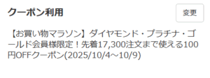 【お買い物マラソン】ダイヤモンド・プラチナ・ゴールド会員限定の100円OFFクーポン