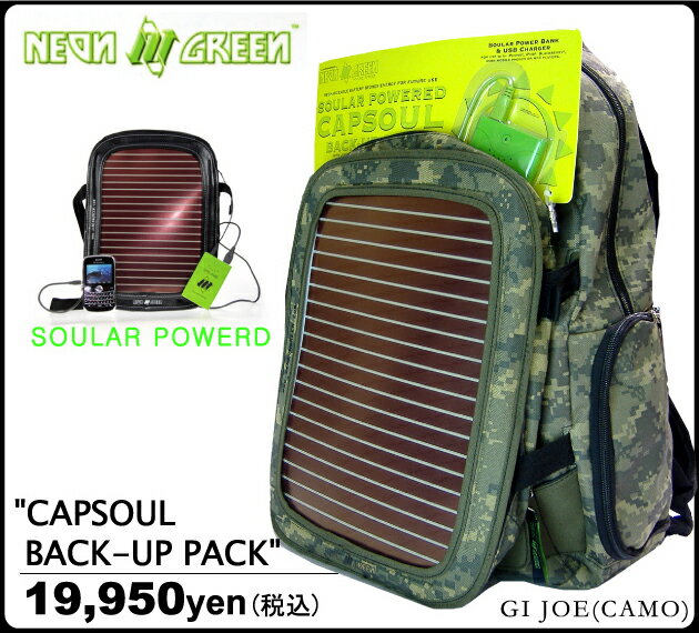 SALE 【NEON GREEN】(ネオングリーン)ソーラーパネル搭載☆バックパック“CAPSOUL BACK-UP PACK” あす楽対応