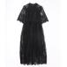 ドレス配色レース×ハシゴレース切り替えワンピースドレス