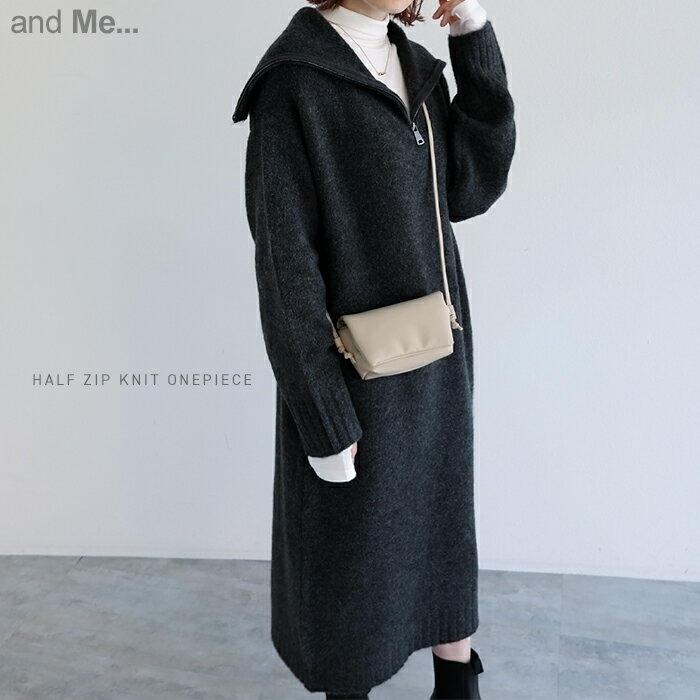 SC/M/Lサイズ [低身長サイズ有]ハーフジップ起毛ニットワンピース レディース 秋 冬 / ワンピース ニットワンピース ロング丈 ハーフジップ セーラーカラー 起毛ニット