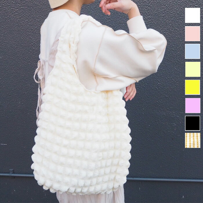 [88flix] トートバック 韓国 もこもこ 大きめ バブル ショルダーバッグ エコバック 大容量 (ホワイト)