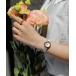 一秒ごとに刻まれた目盛りが視認性を高め、3・6・9時位置にさりげなく輝くクリスタルもポイントになっています。