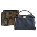 フェンディFENDIミニピーカブー2wayハンドバッグバッグカバー付き8BN2447AR717レザーネイビーブルー青ズッカ柄PVCショルダー中古