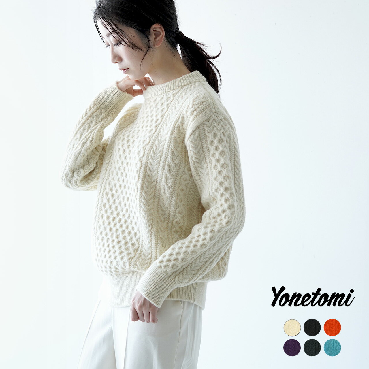 ヨネトミ Yonetomi リボン ウール アラン ニット プルオーバー セーター REBORN WOOL ARAN KNIT P/O レディース メンズ 2022秋冬 95-224-021 【送料無料】1106