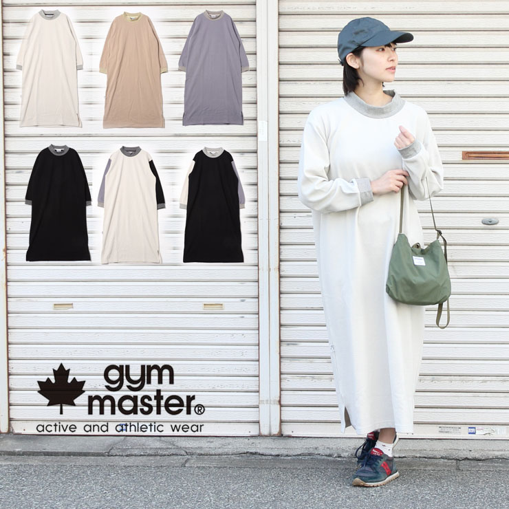 gym master(ジムマスター) 公式8.0oz リップルボーダーワンピースレディース|長袖|ワンピース||おしゃれ | カジュアル|ストリート|マキシ丈|クルーネック|モックネック|クレイジー|秋冬春|海外発送|ブランド|G933626
