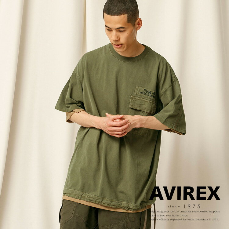 AVIREX フェイド ウォッシュ ルーズ フィット ミリタリー ポケット Tシャツ