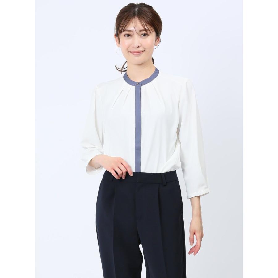 レディースシャツブラウスエムエフエディトリアルレディース/m.f.editorial:Women配色バンドカラー7分袖比翼ブラウス