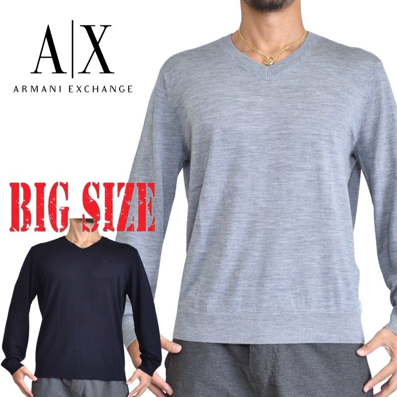 アルマーニエクスチェンジ A/X ニット セーター Vネック プルオーバー 黒 ブラック グレー ARMANI EXCHANGE XL XXL 大きいサイズ メンズ あす楽