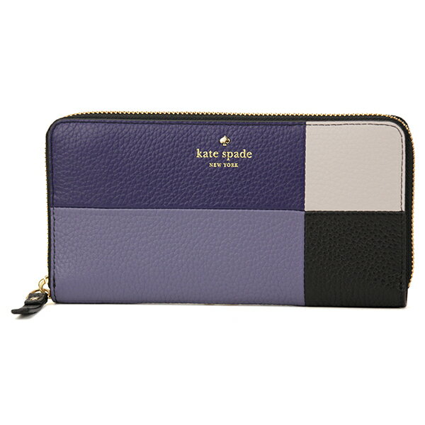 ケイトスペード 長財布(ラウンドファスナー) kate spade PWRU4925 476 財布 コブルヒル COBBLE HILL LACEY レディース OYSTER BLUE MULTI ブルー系 青/ブラック 黒 レイシー ブロックパターン フェミニン エレガント【 ケートスペード 送料無料】