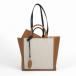トッズTOD’Sトートバッグベージュ ダブルアップショッピングバッグMレザー×リネンミックスキャンバスレディース