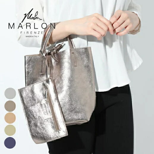 マーロンフィレンツェ MARLON FIRENZE bs0006 マルロン レザー ミニトートバッグ 2WAY ポーチ付き イタリア製 本革 メタリック シルバー ブロンズ ゴールド ピンクゴールド【あす楽対応】