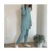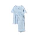 こちらは、シャーリングのシワ感と淡いカラーリングがナチュラルで優しい雰囲気のパジャマです。