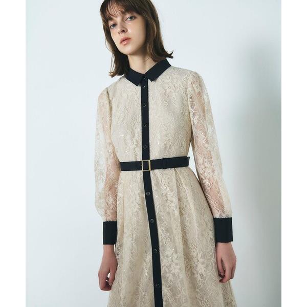 こちらは、スパンコール刺繍を施した繊細で美しいレースを贅沢に使用し、バイカラーで全体を引き締めて、甘すぎないデザインに仕上げた、華やか&上品に着映える、大人のシャツワンピースです。