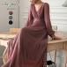 ワンピースカシュクールパーティードレスレディースロングマキシ丈シフォンワンピVネック長袖フォーマルラメきれいめ大人上品エレガント春