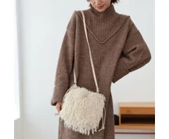 スクープのたまご 衣装で久留栖るながトライシル フェザーファー2way巾着ショルダーバッグを使用!