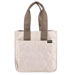 [リズデイズ] トートバッグ レディース 大きめ ナイロン 仕切り付き トートバッグ a4 軽量 上品 キルティング おしゃれ 肩掛け 通勤 通学 (ナチュラル×グレーベージュ) |