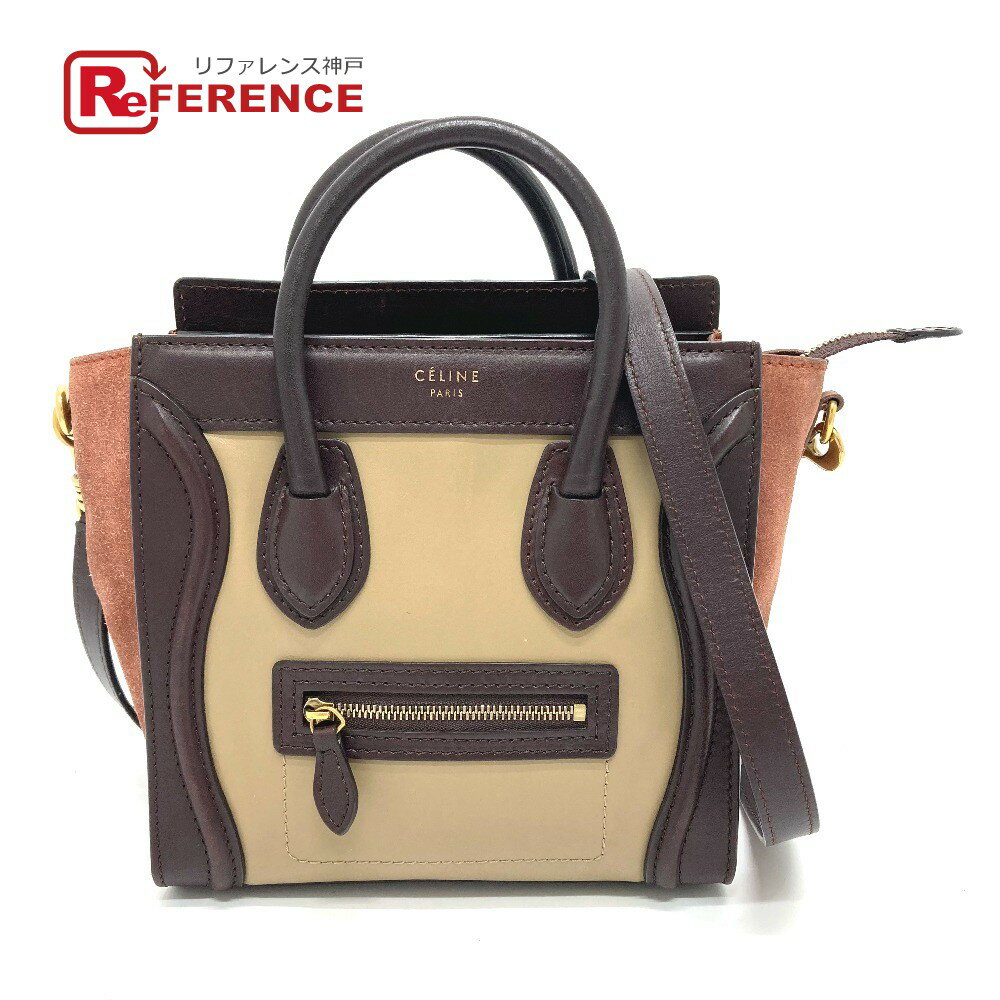CELINE セリーヌ ラゲージナノ ショッパー 2WAY ショルダーバッグ ハンドバッグ レザー/スエード レディース ブラウン×ベージュ 【中古】