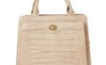 フロントの2層式ポケットでスマホや財布を整理しやすく、高密度ナイロンと格子状エンボスレザーのコンビで、軽さ・耐久性・上品な光沢感を両立しています。