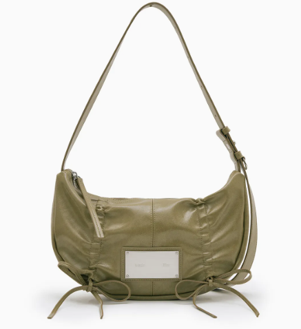Matin Kim(マーティンキム)の「HALF SHIRRING RIBBON ROUND BAG」は、両サイドのくしゅくしゅとしたシャーリングとリボンが特徴の、韓国で大人気のラウンド型ショルダーバッグです。