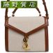 【中古】YvesSaintLaurentカサンドラトップハンドルハンドバッグ2WAYショルダーバッグレザーキャンバスベージュブラウン57800