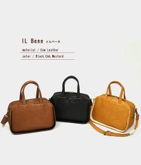 しっとりとした手触りと上品な質感、荷物が出し入れしやすい広い口元が特徴で、日常使いから旅行まで幅広く対応する機能的なアイテムです。