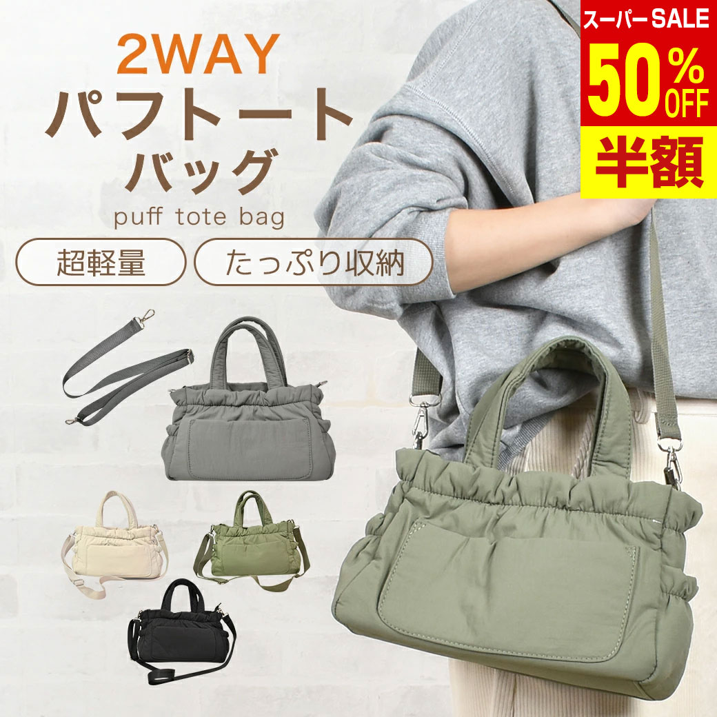 \楽天スーパーSALE 50%OFF & 送料無料/ 半額 【cest cool】2WAYパフトートバッグ パファーバッグ 中綿 パディング 軽い 軽量 超軽量 パフバッグ ボンディング 軽くて持ちやすい 送料無料 モコモコ ふわっと ポケット 収納力 ショルダーバッグ ハンドバッグ マチ広