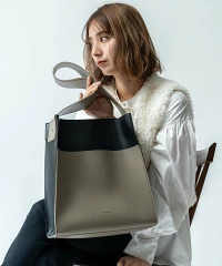 リネームRenameトートバッグフェイクレザーバイカラー紺ネイビー黒ブラック/AEメンズ