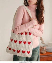 トートバッグハート柄ニットトートバッグレディース